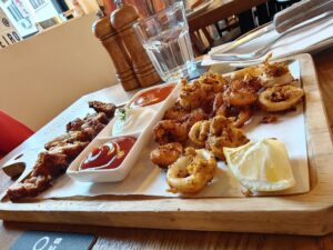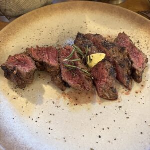 We both had the rib-eye steak, cooked medium rare, and it was the clear star of the meal. Beautiful crust, perfectly juicy, richly flavoured, and expertly seasoned — exactly how a rib-eye should be. Super yummy and deeply satisfying. The fries were crisp and golden, and the baked Camembert was rich, molten, and indulgent, especially with the excellent crusty bread.
