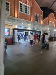 The club’s interior combines old-world charm with modern flair, showcasing glass-encased decor and lush greenery. While the toilets are limited (just four stalls each for men and women), popcorn carts near the restroom add a playful touch.