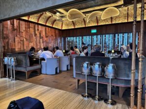 March 17, 2026 at 6:24 pmWe asked the difference between the 3 options, having dinner minimum 50 SGD per person, pay the ticket for the bar (38 SGD) or the skypark observation deck (39 SGD). The explanation wasn’t super clear but looked like the dinner included access to everything…. but not. Besides not being the best taste ever, this is my opinion: price-cost-experience is not worth it to have dinner there, the access to the bar was included but not to the observationdeck, the bar menu looked better than the dinner menu,as well as the view. However, if you are just looking for the view better to pay only the access to the observation deck. My cocktail was sweet but not so bad.