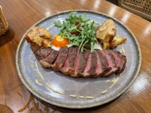 The steak and fries were great. The meat does feel a bit under seasoned, but every bit of it is great.