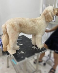 Added my puppy’s photo from the back for comparison before grooming.